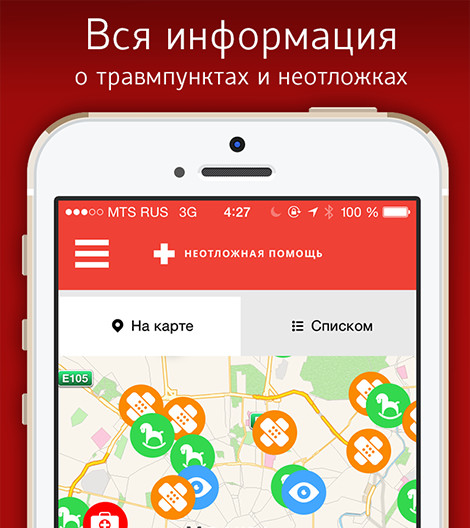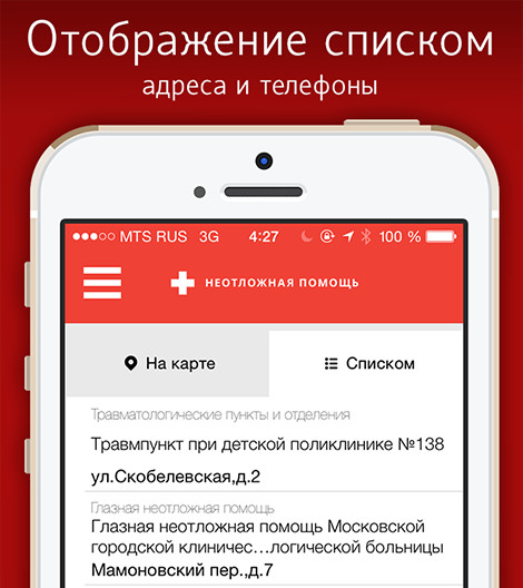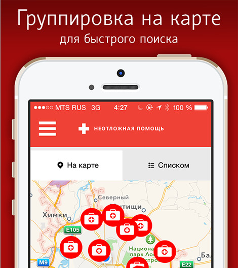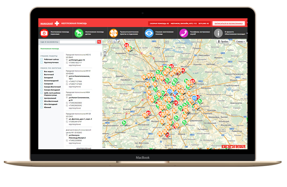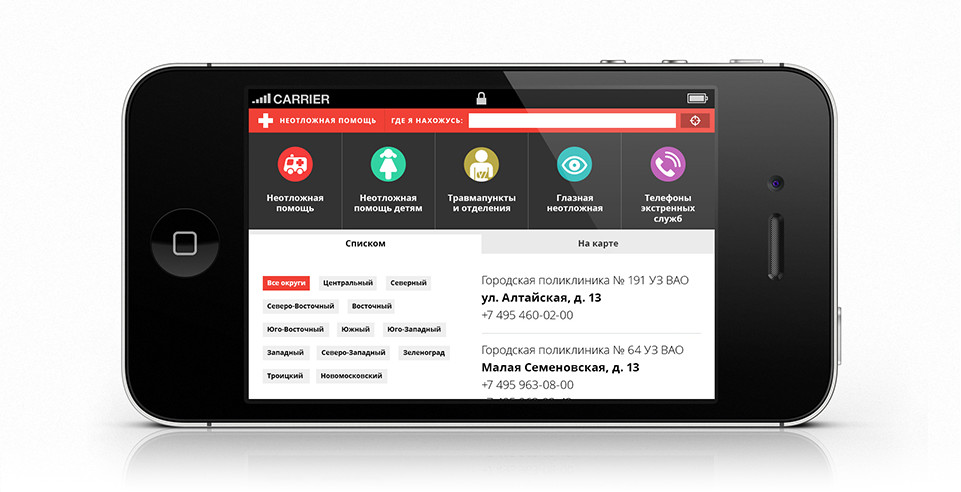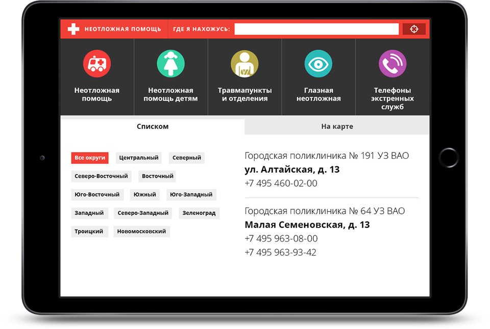 The “Ambulance” mobile application will help you find the closest ambulance facility in Moscow.