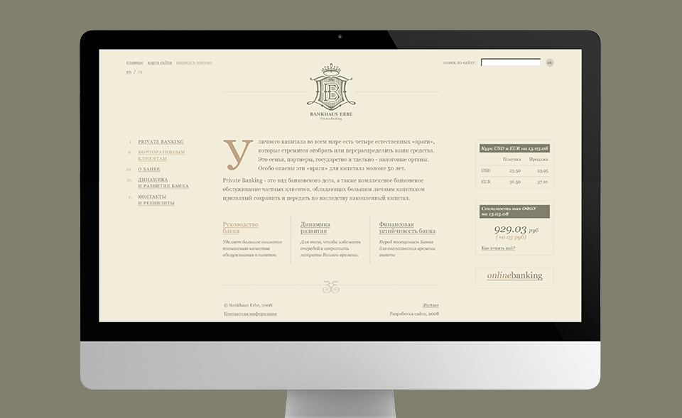 Bankhaus Erbe (ex MBKhKhS) is one of our old clients. The bank specializes in private-clients capital managing services, so called Private Banking.