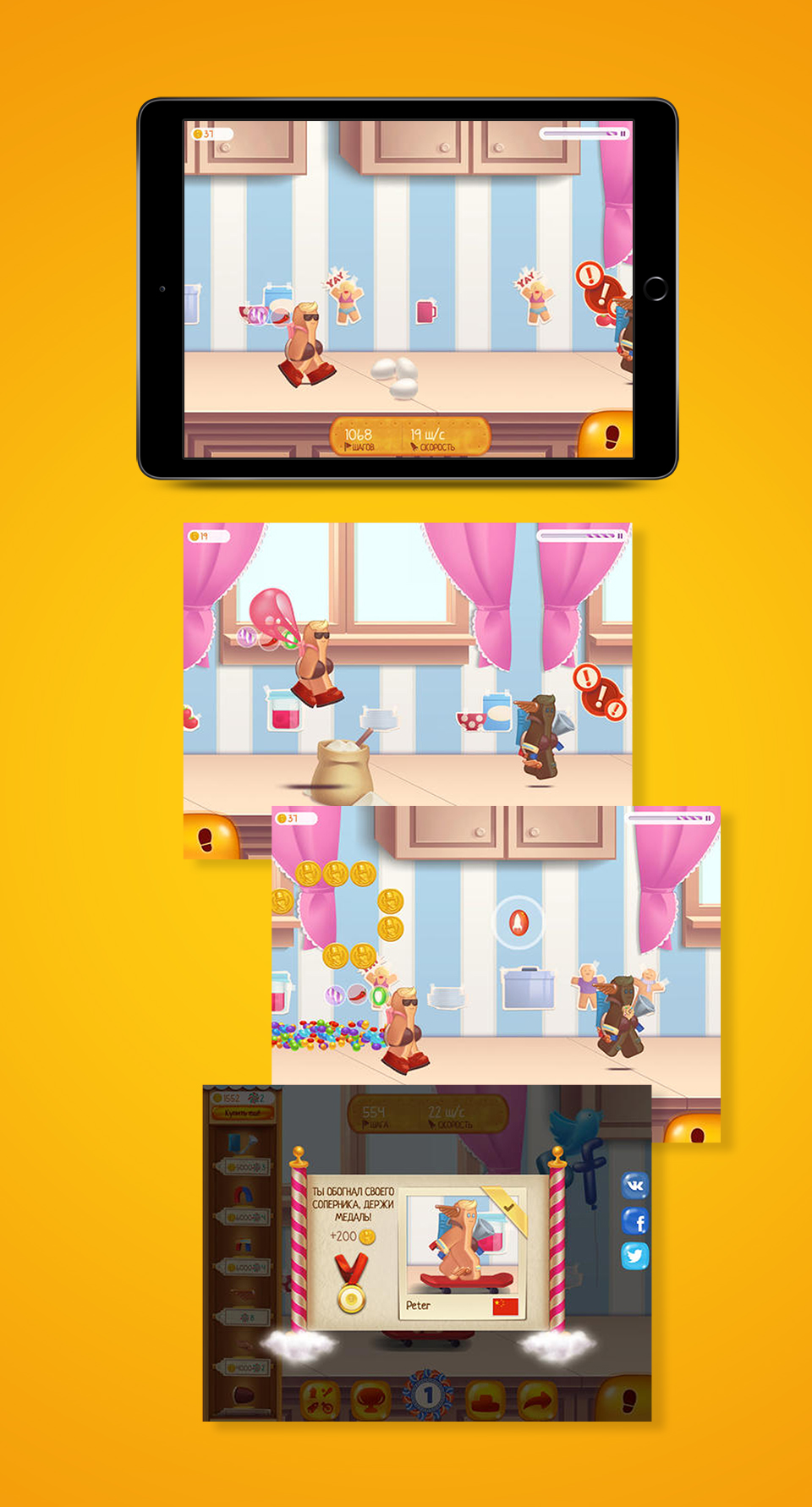 The “Cookie” game is a fascinating story about competitions between gingerbread men. Your main task is to help the Cookie run farther and faster than its competitors, keeping in mind collecting bonuses and jumping over obstacles.