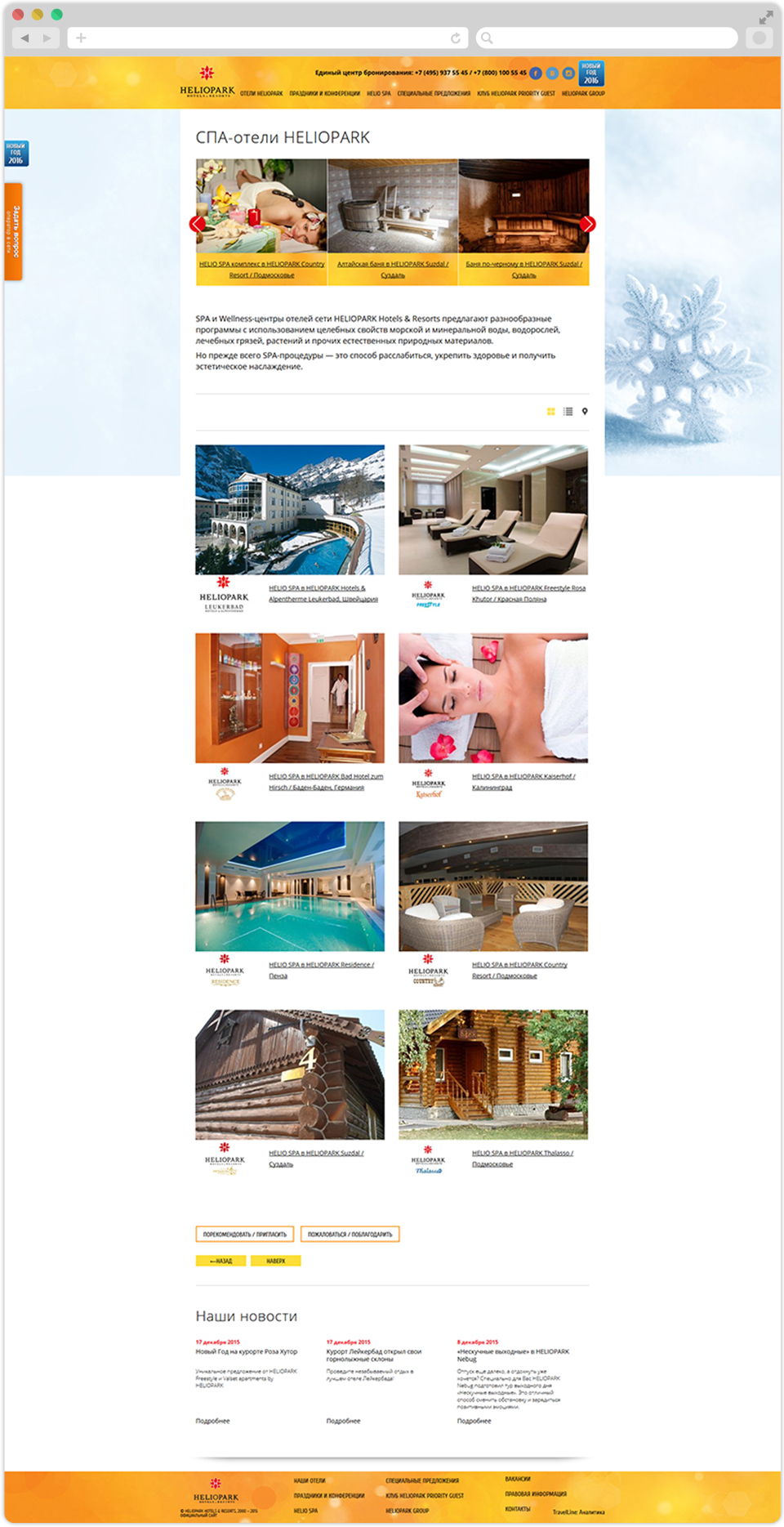 Website for the Heliopark hotel network