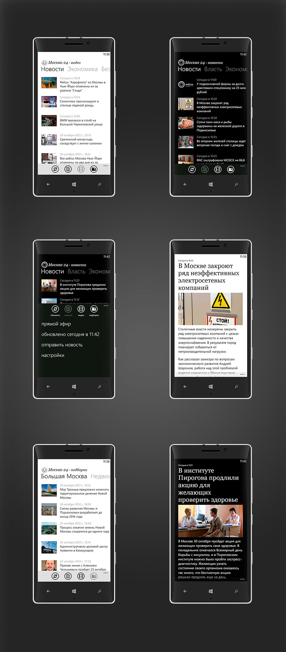 Moscow 24 is a mobile application for the like-named TV channel on the Windows Phone platform. Here you can get all Moscow news of the M24.ru city informational portal. 24/7 update of the news feed, live videos, economics, culture, auto, and occurrences - all these are in the mobile client interface.